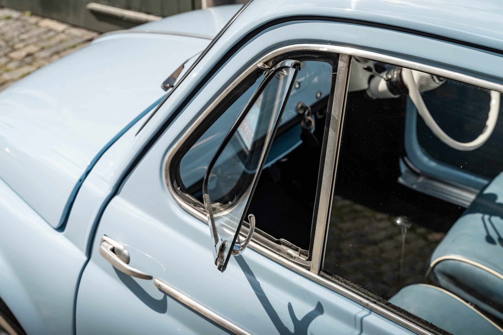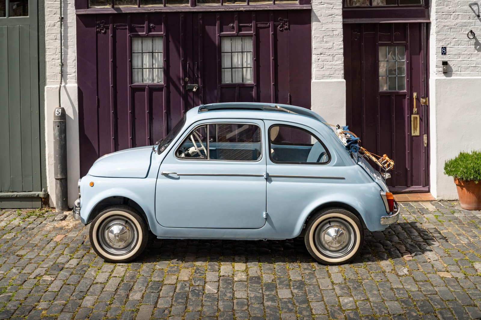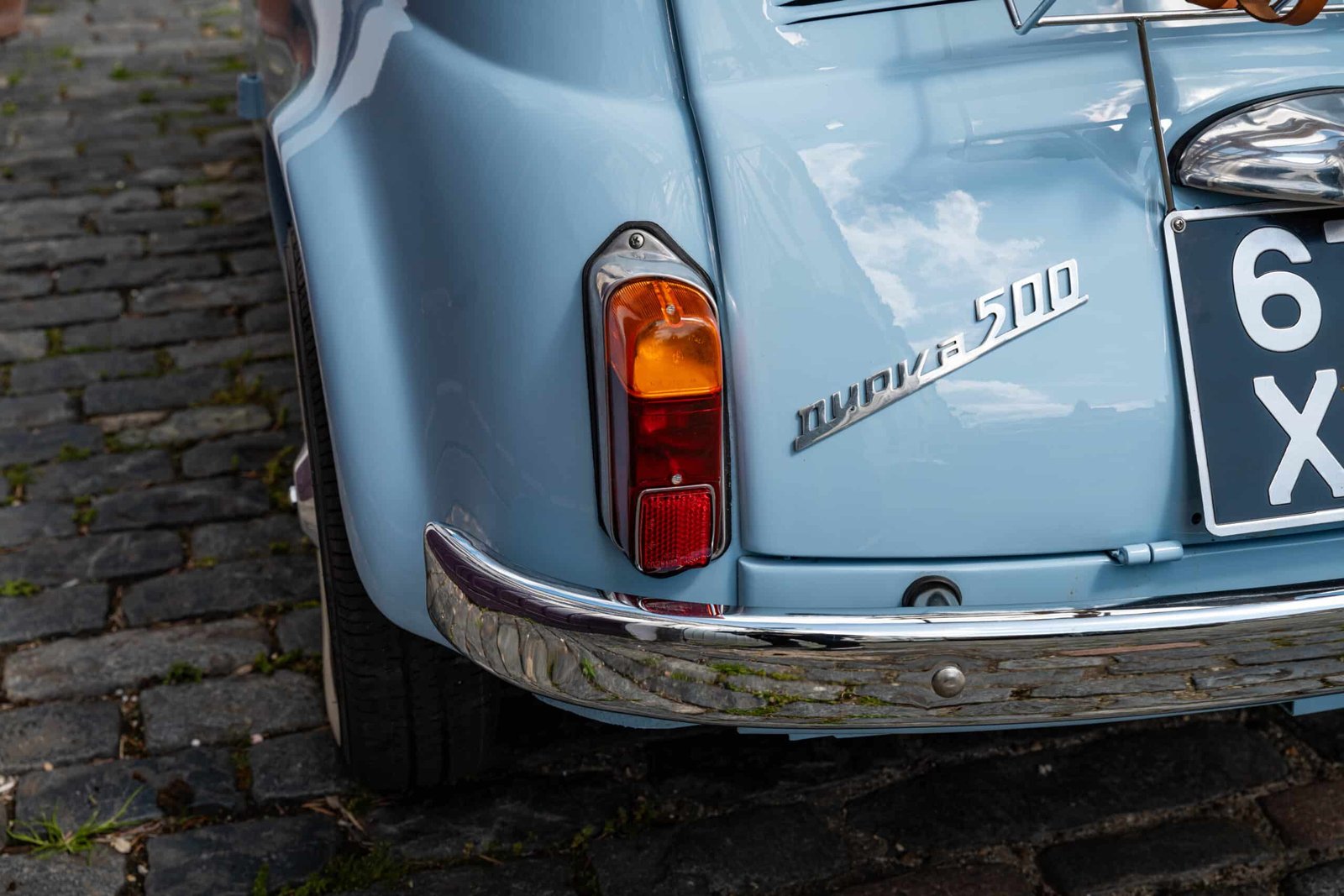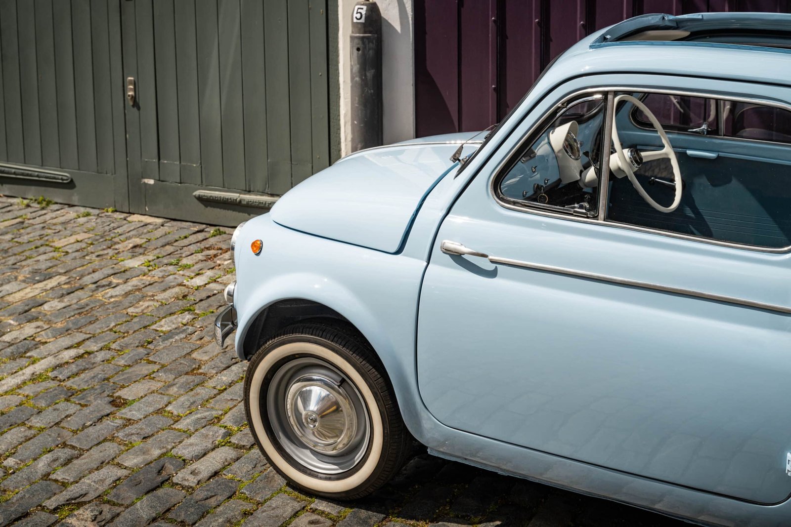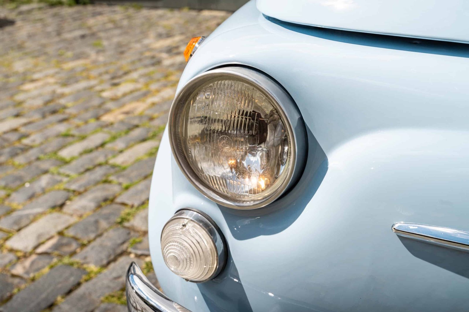 She now presents in her original Celeste Medio Blue paint (403) colour with blue transformable hood and matching blue vinyl interior trim. Her original and matching numbers engine does come with the car although she now has a hand-built Fiat 126 650cc engine producing over 28 hp which is paired to a matching and fully rebuilt 126 synchro transmission, both of which were built in Germany.