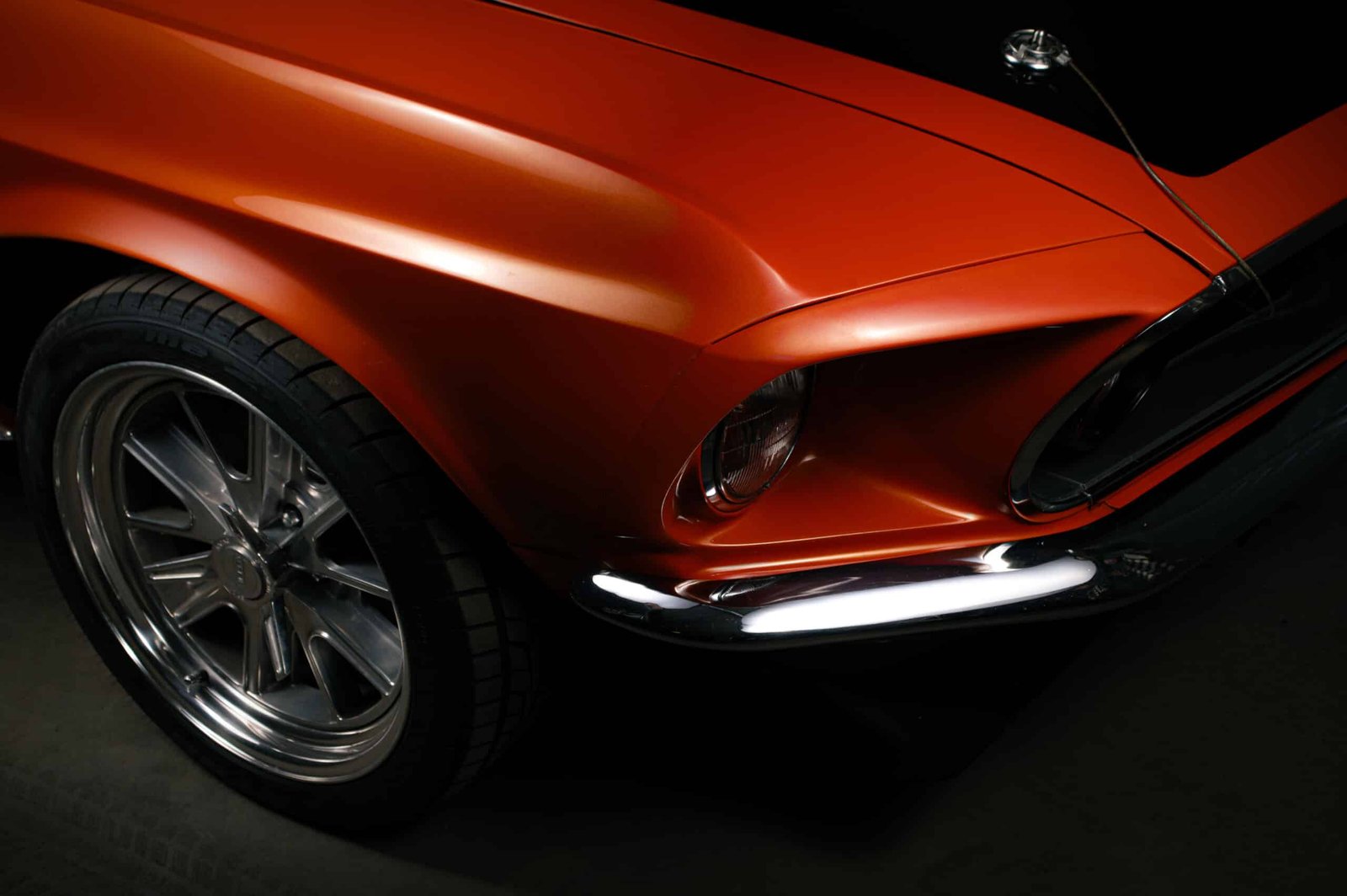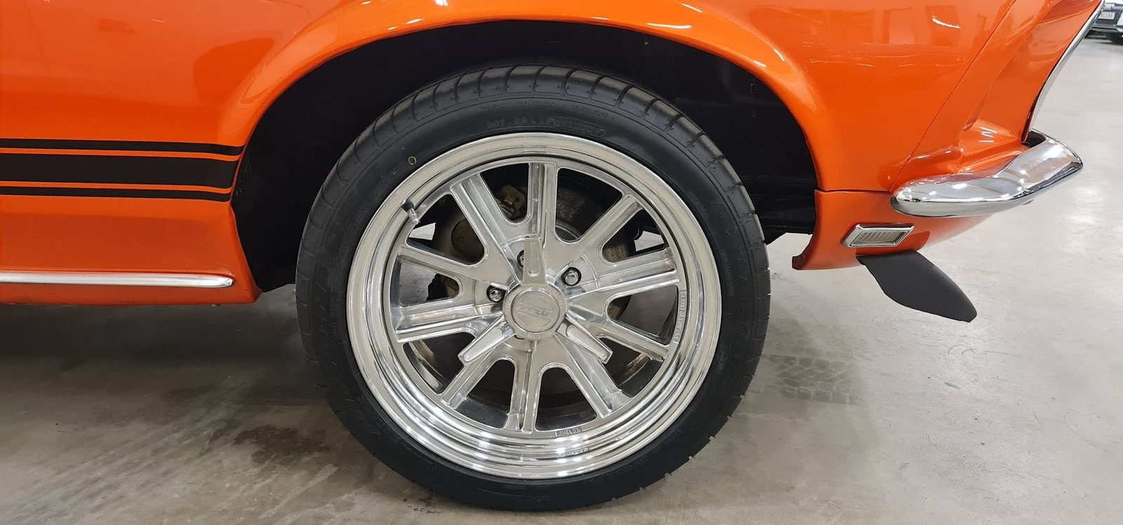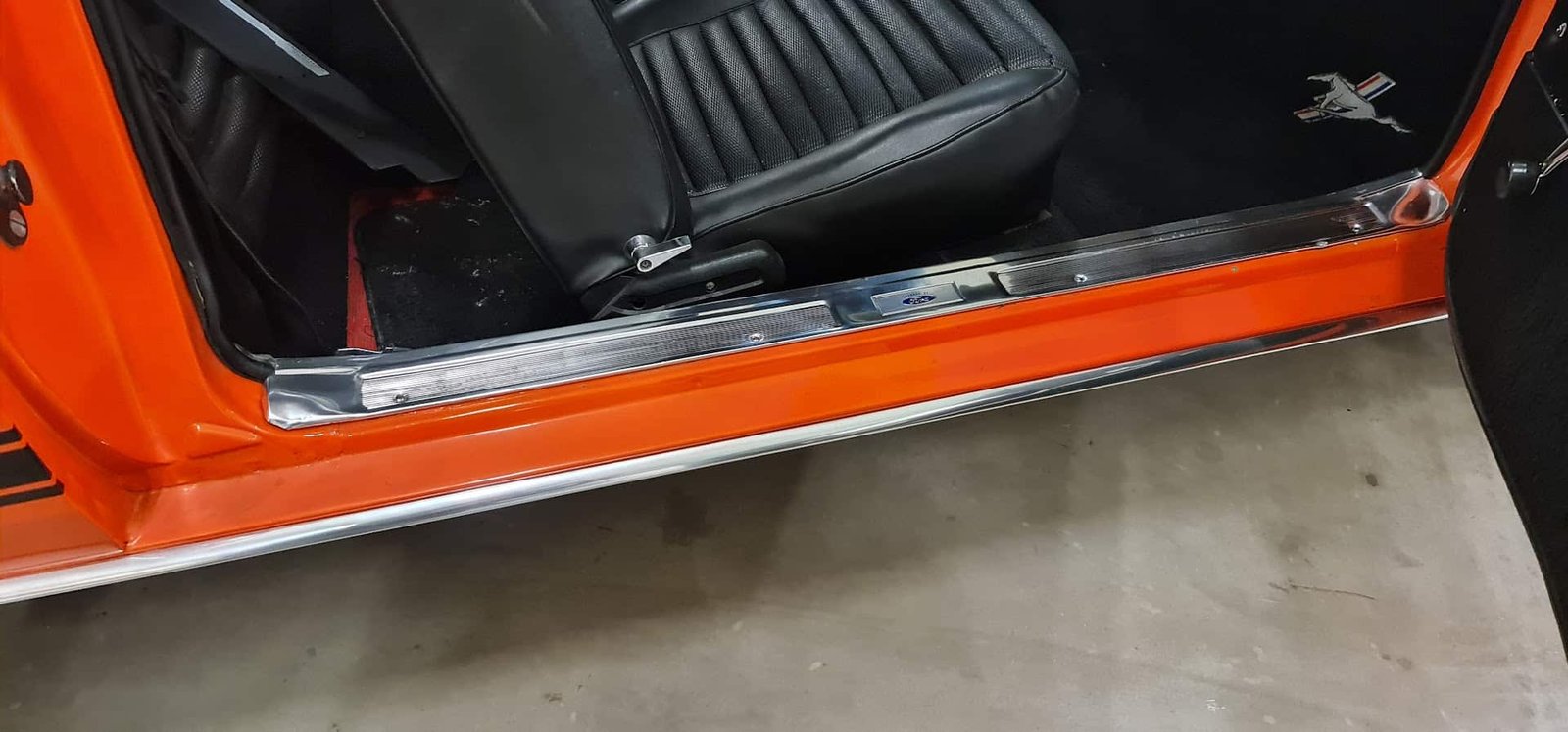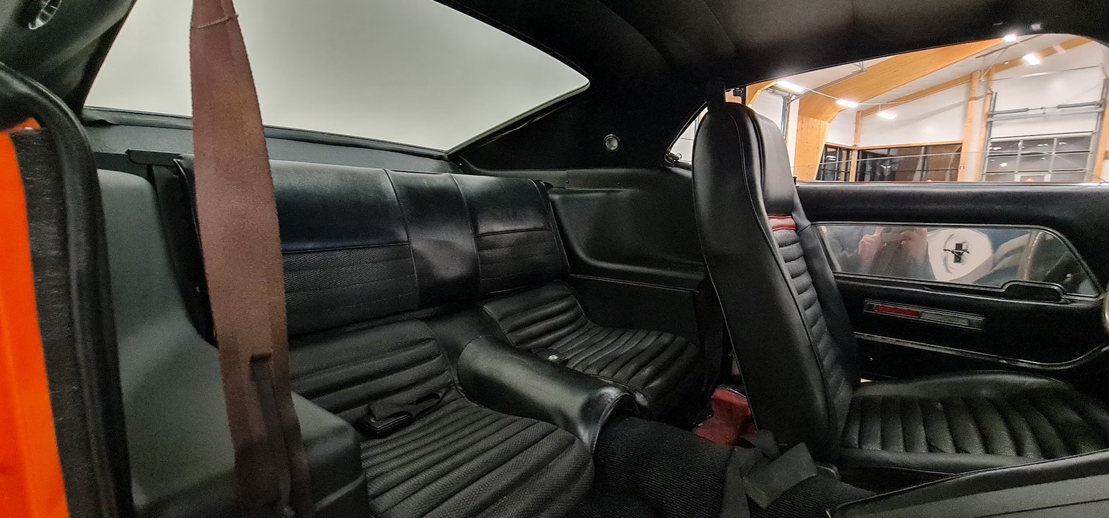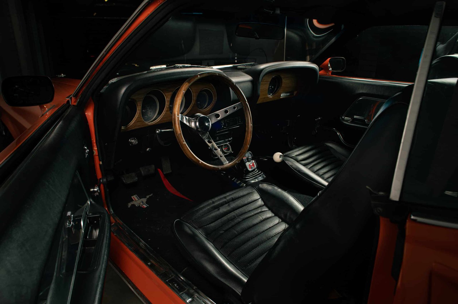 The joy of any Mustang is spotting the factory options and specifications and just how well these have been preserved. This car has been restored to a high standard, including repainting in period-appropriate orange and sports black bonnet and decals. It sits on smart Shelby alloys.