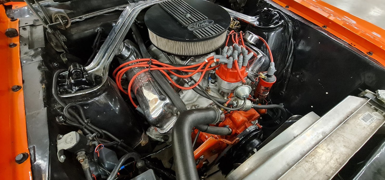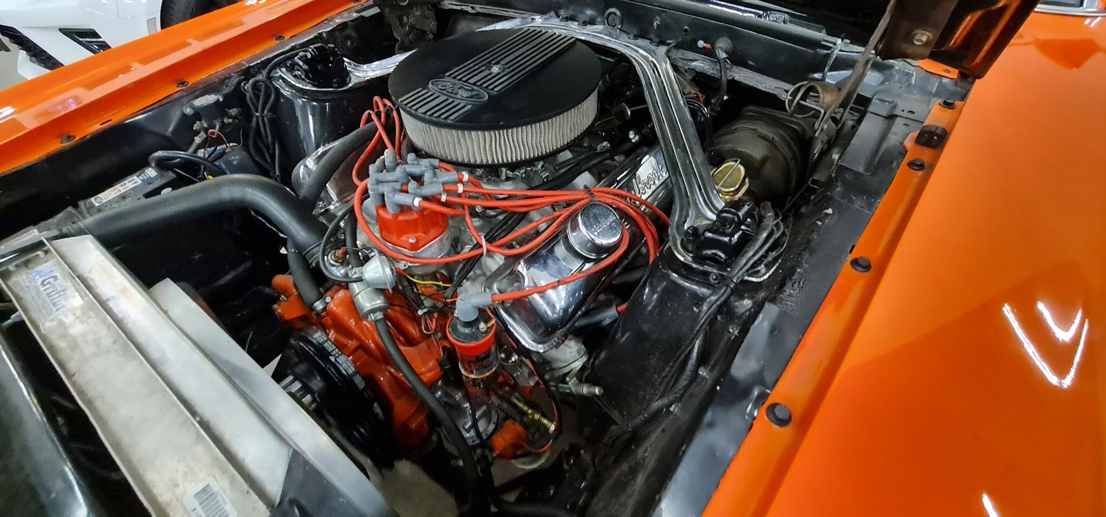 This car is fitted with the 390CI ‘S-code’ engine. It is mated to the optional four-speed manual box. During the car’s restoration, the suspension was fully overhauled to factory specification and the car fitted with a useful factory-style power steering conversion.