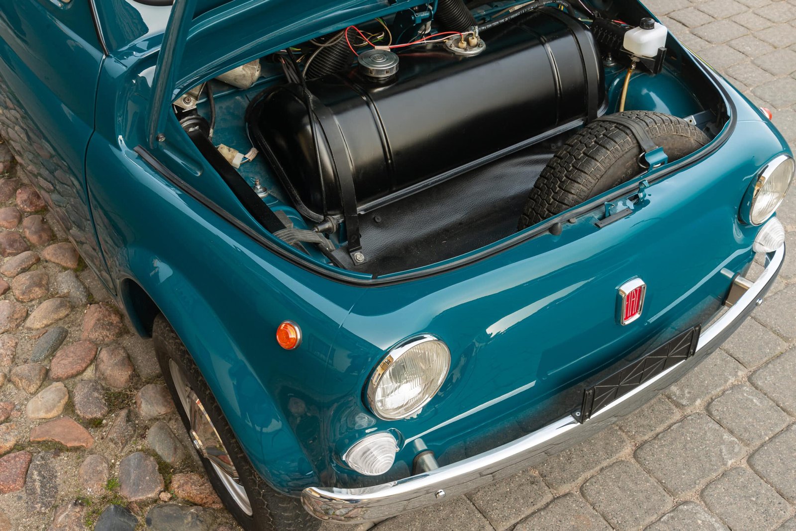 Following the mechanical work, the car underwent a complete restoration, including full disassembly of the body and media blasting to ensure a correct and lasting finish. The car is now presented in the wonderfully period-correct Blu Turchese (Turquoise Blue) – a colour that perfectly suits the cheerful yet elegant character of the 500L.