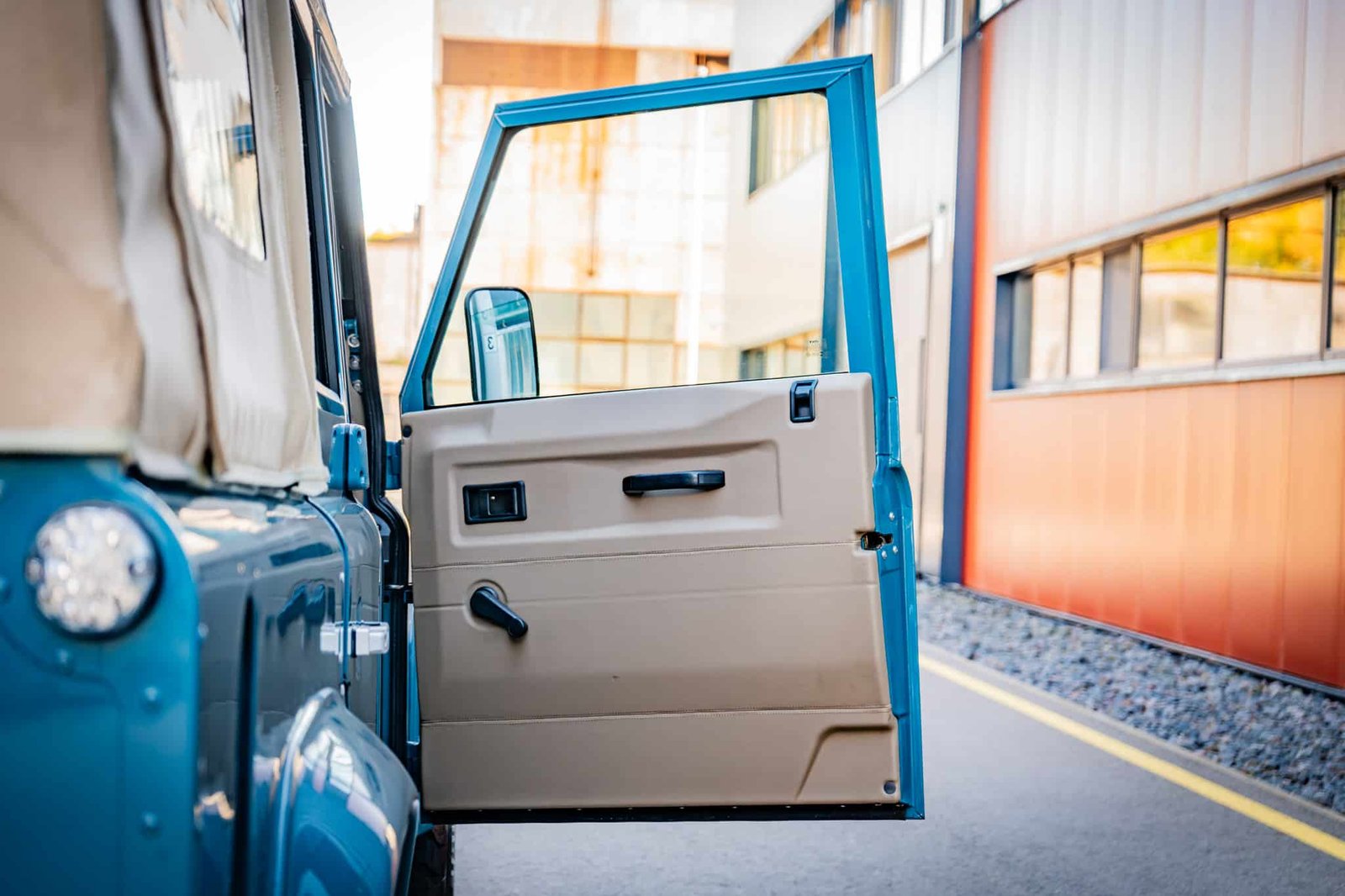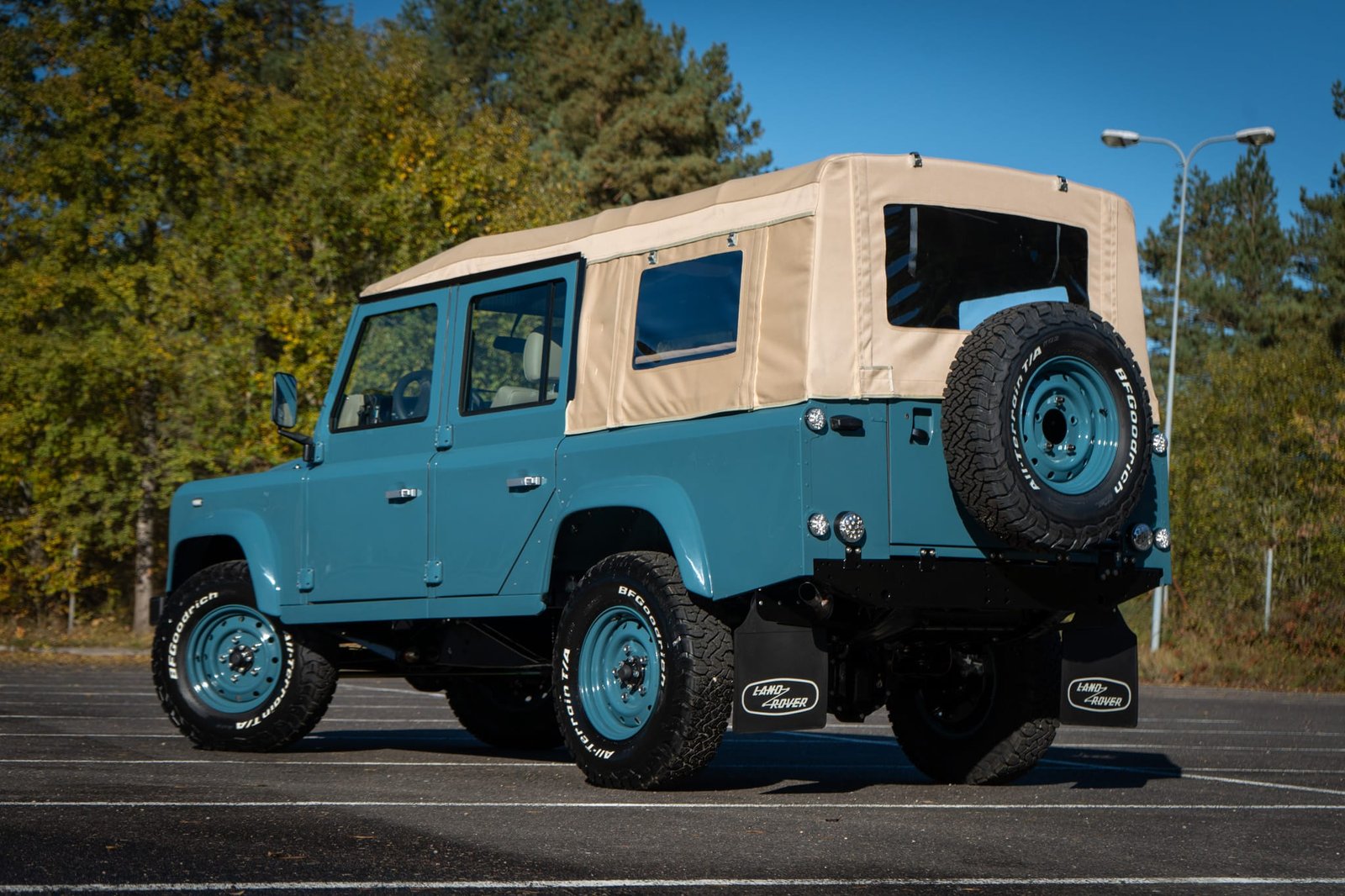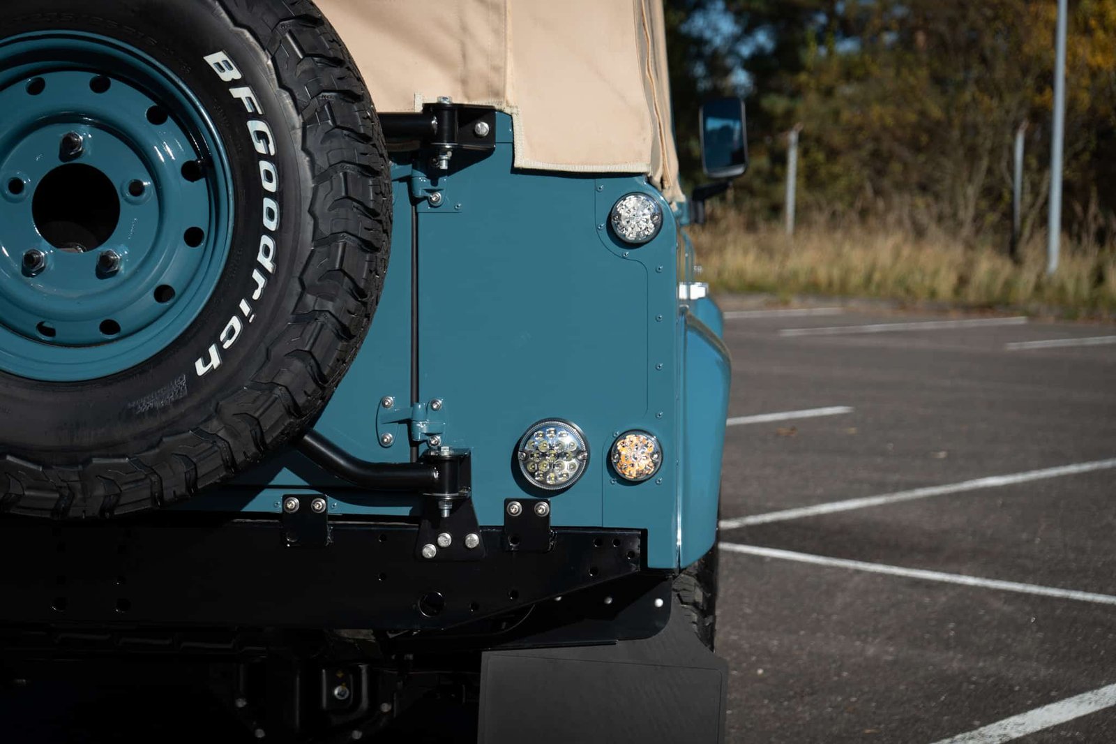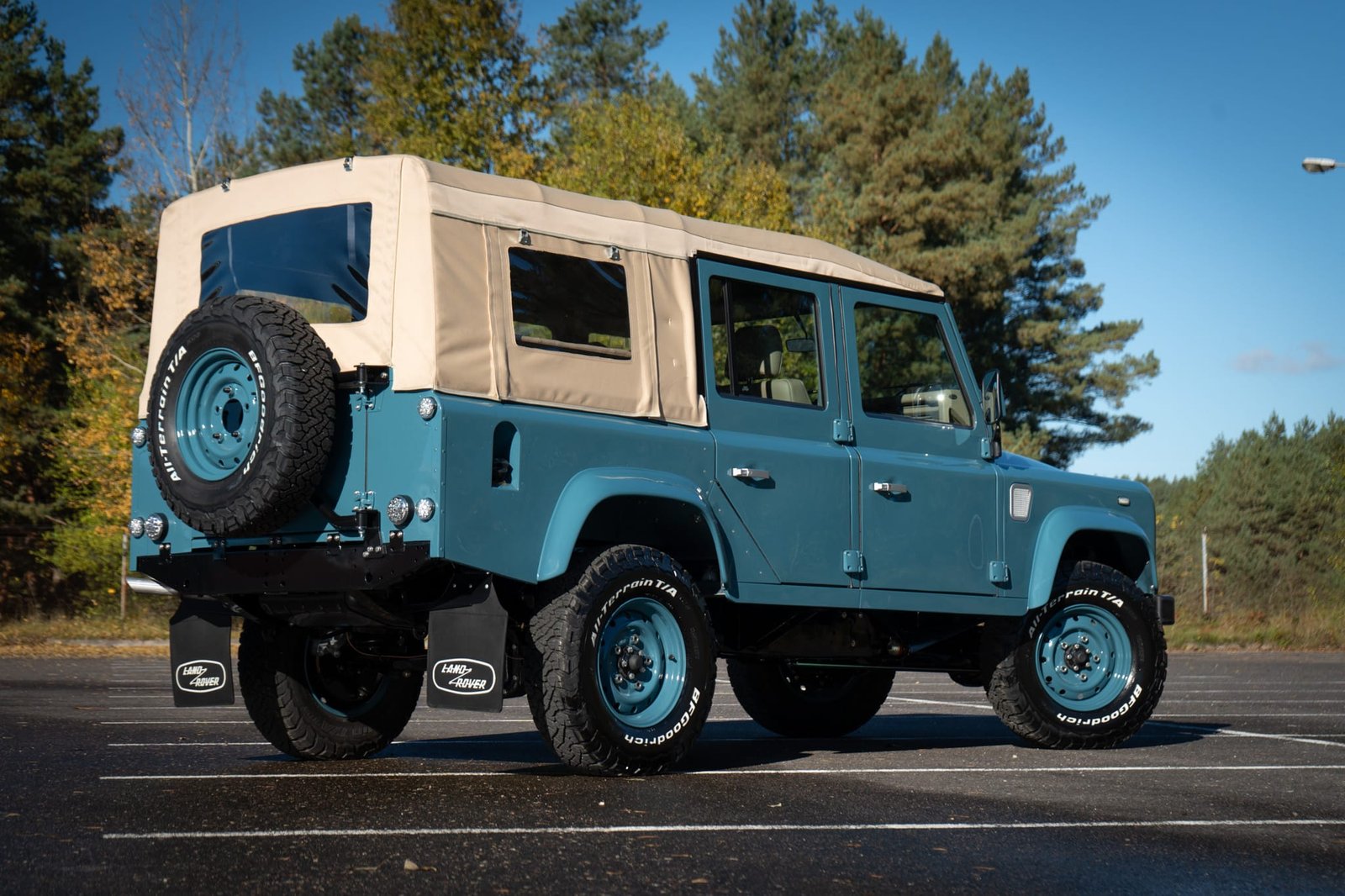 Finished in Marine Blue (LRC006), the bodywork is topped with a sand canvas soft top with black interior lining and supported by a heavy-duty, non-integrated roll cage. Carefully upgraded details throughout include: