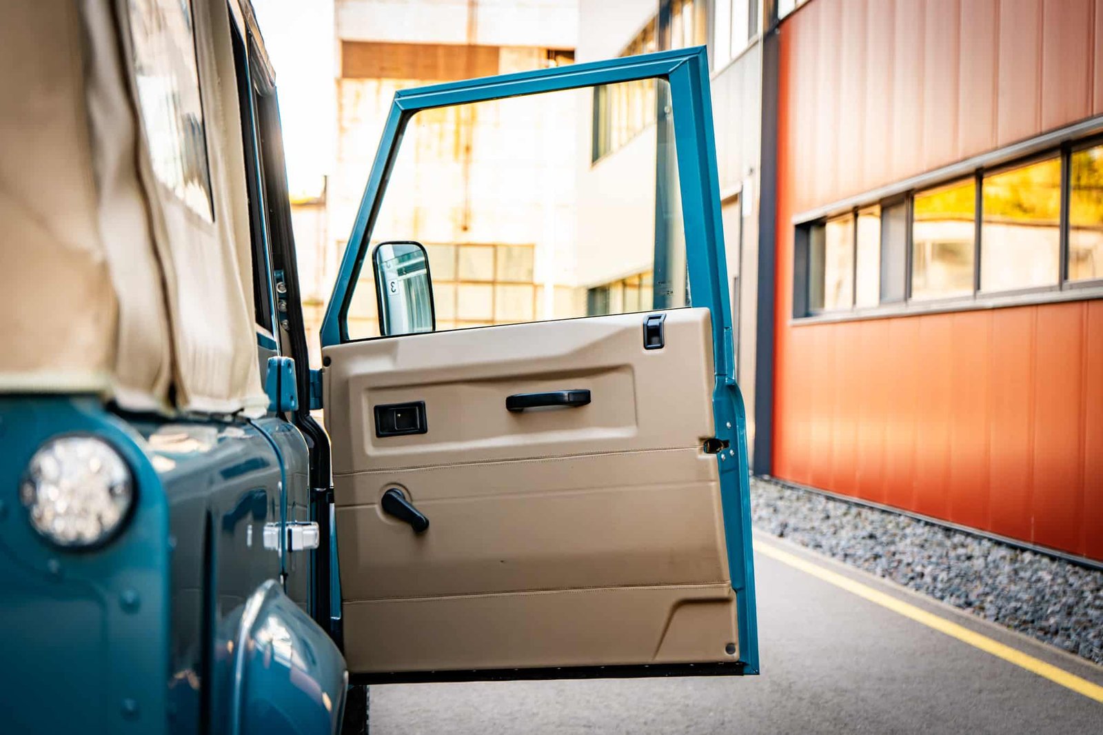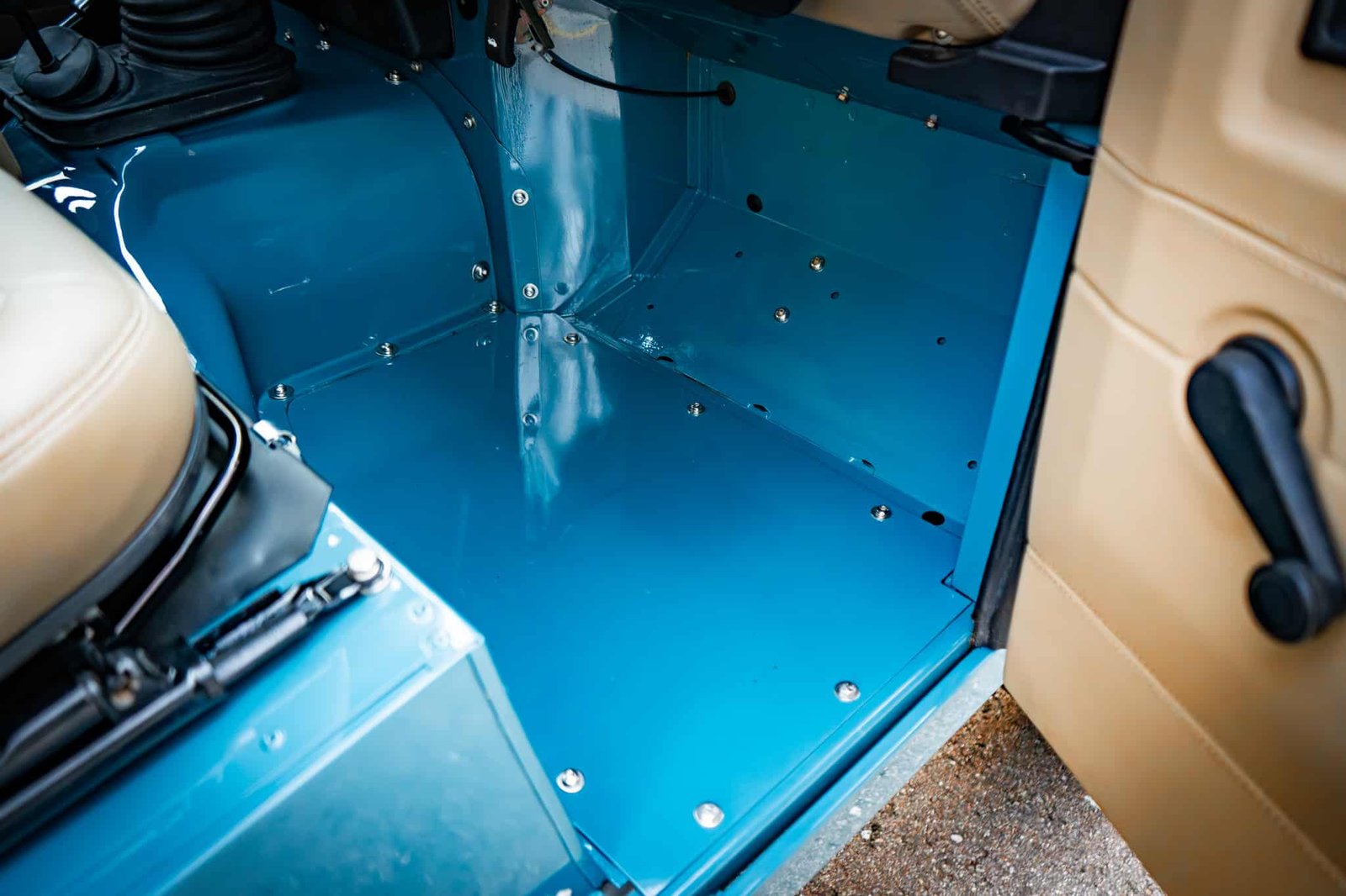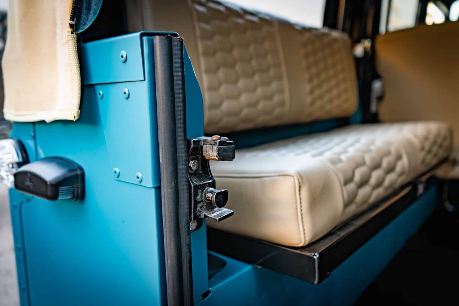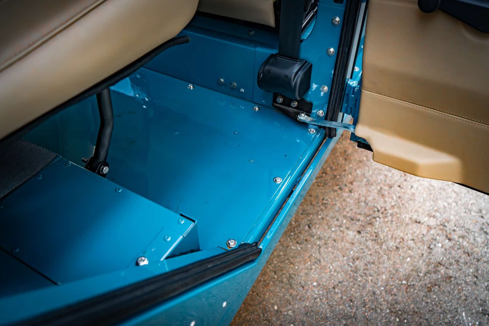 Finished in Marine Blue (LRC006), the bodywork is topped with a sand canvas soft top with black interior lining and supported by a heavy-duty, non-integrated roll cage. Carefully upgraded details throughout include: