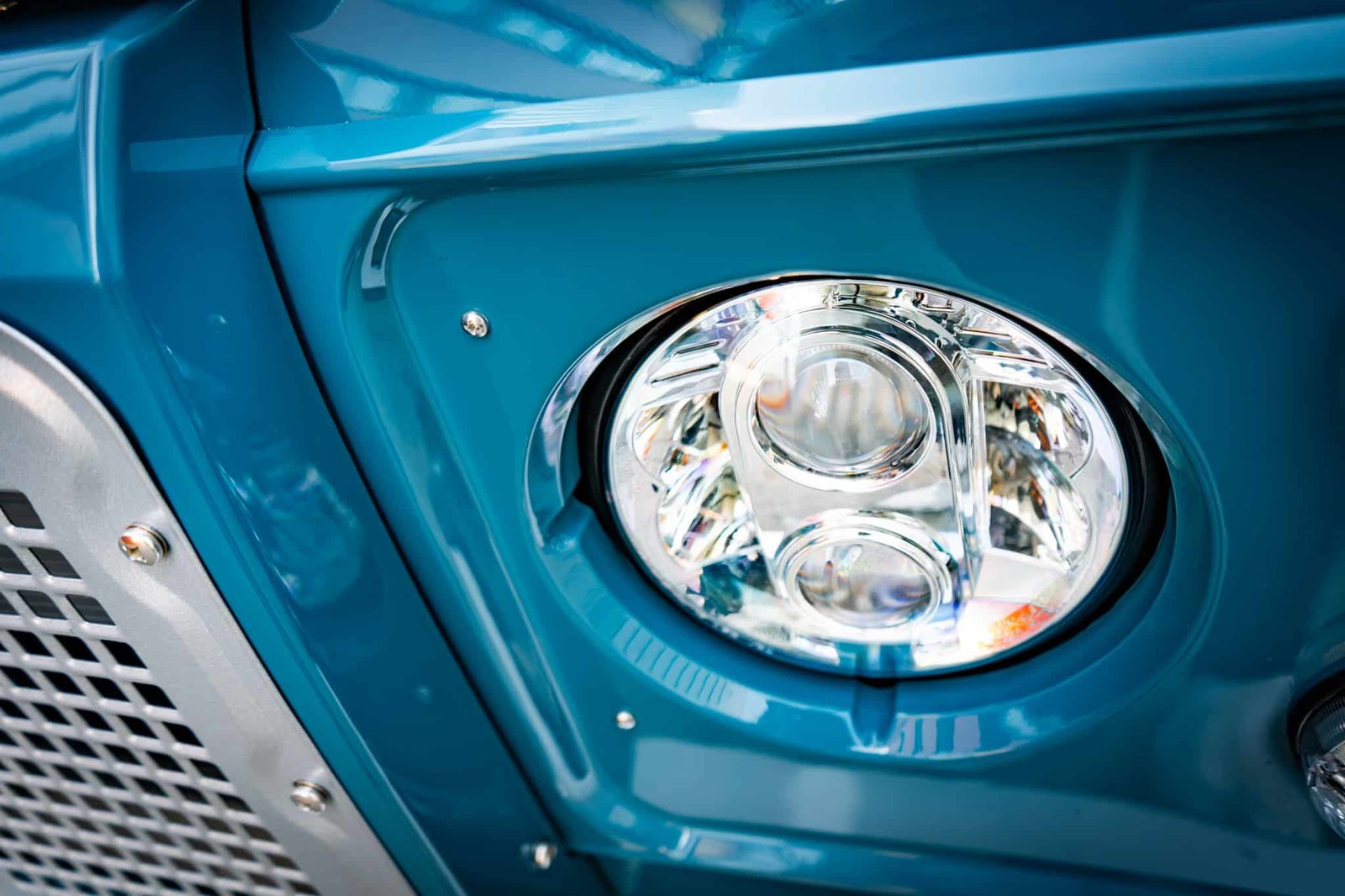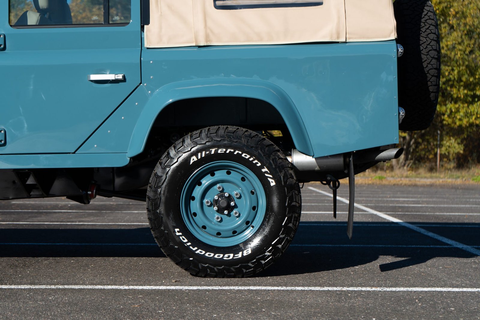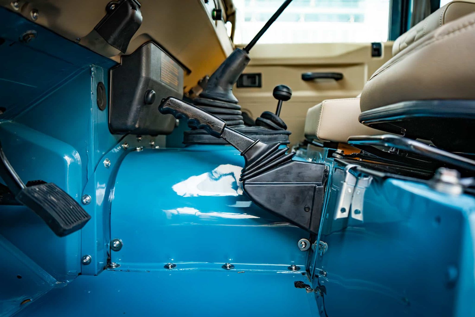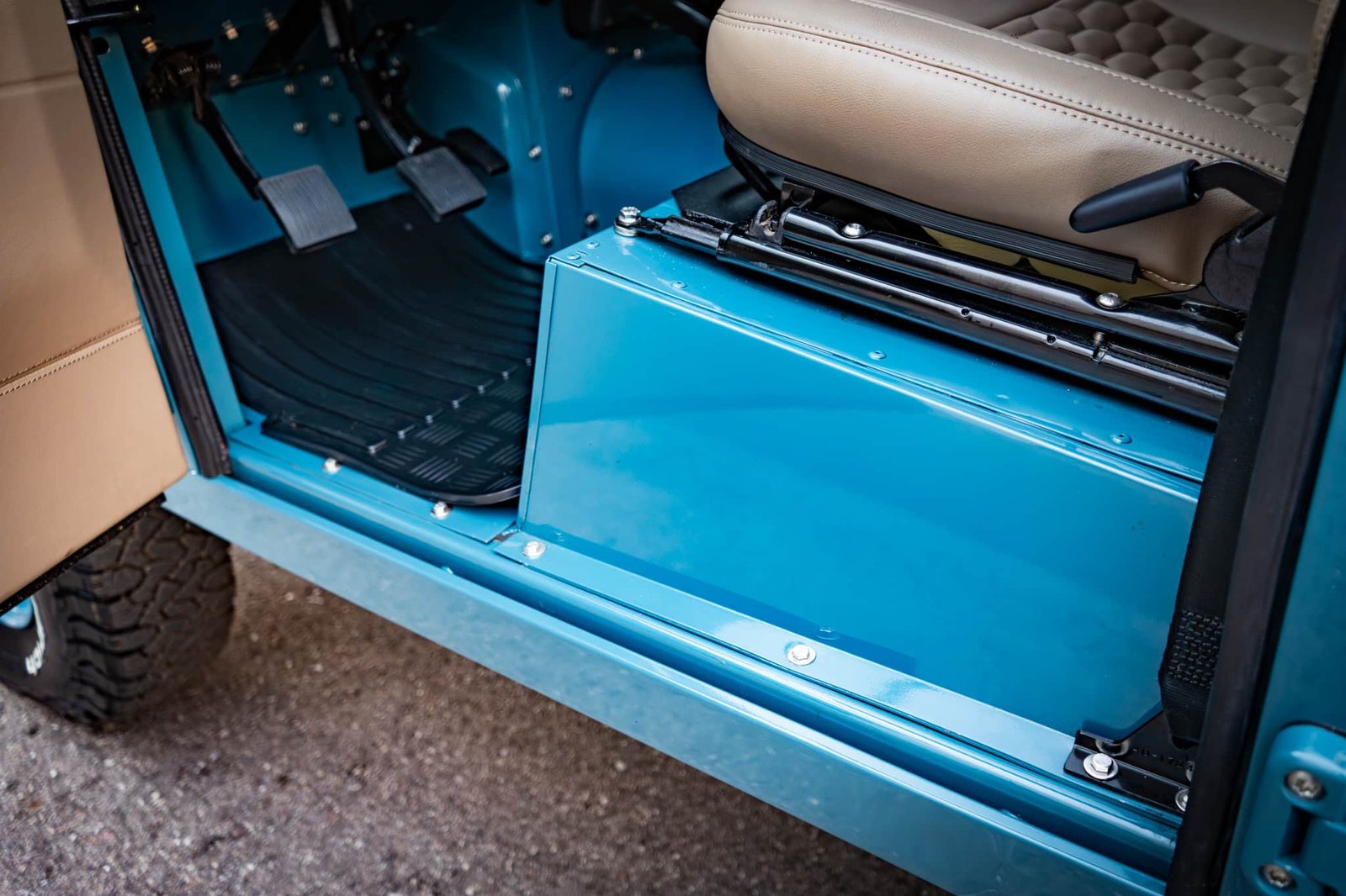 Finished in Marine Blue (LRC006), the bodywork is topped with a sand canvas soft top with black interior lining and supported by a heavy-duty, non-integrated roll cage. Carefully upgraded details throughout include: