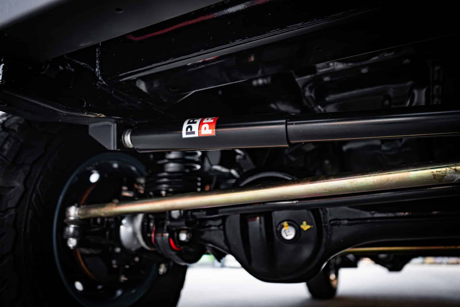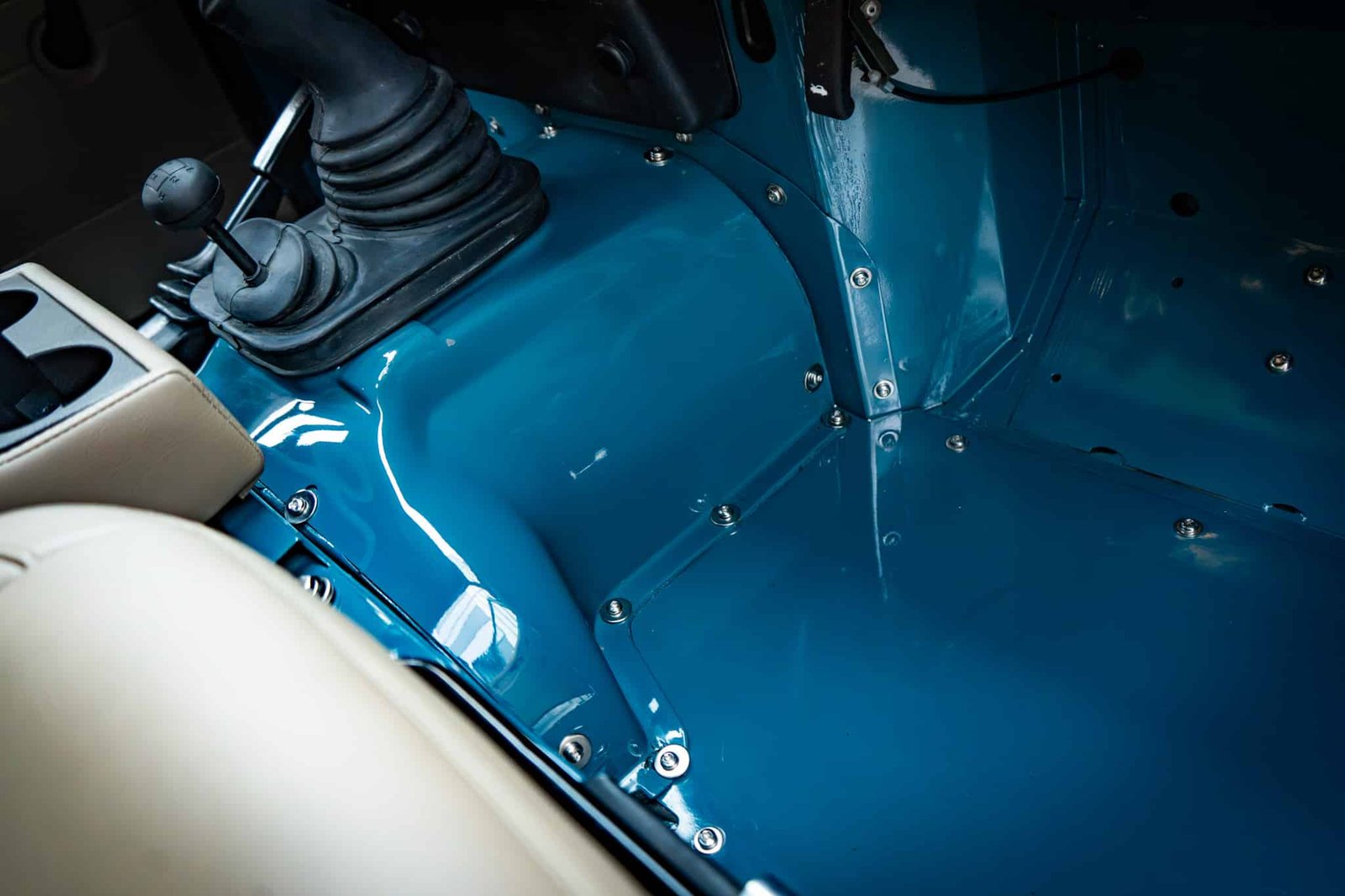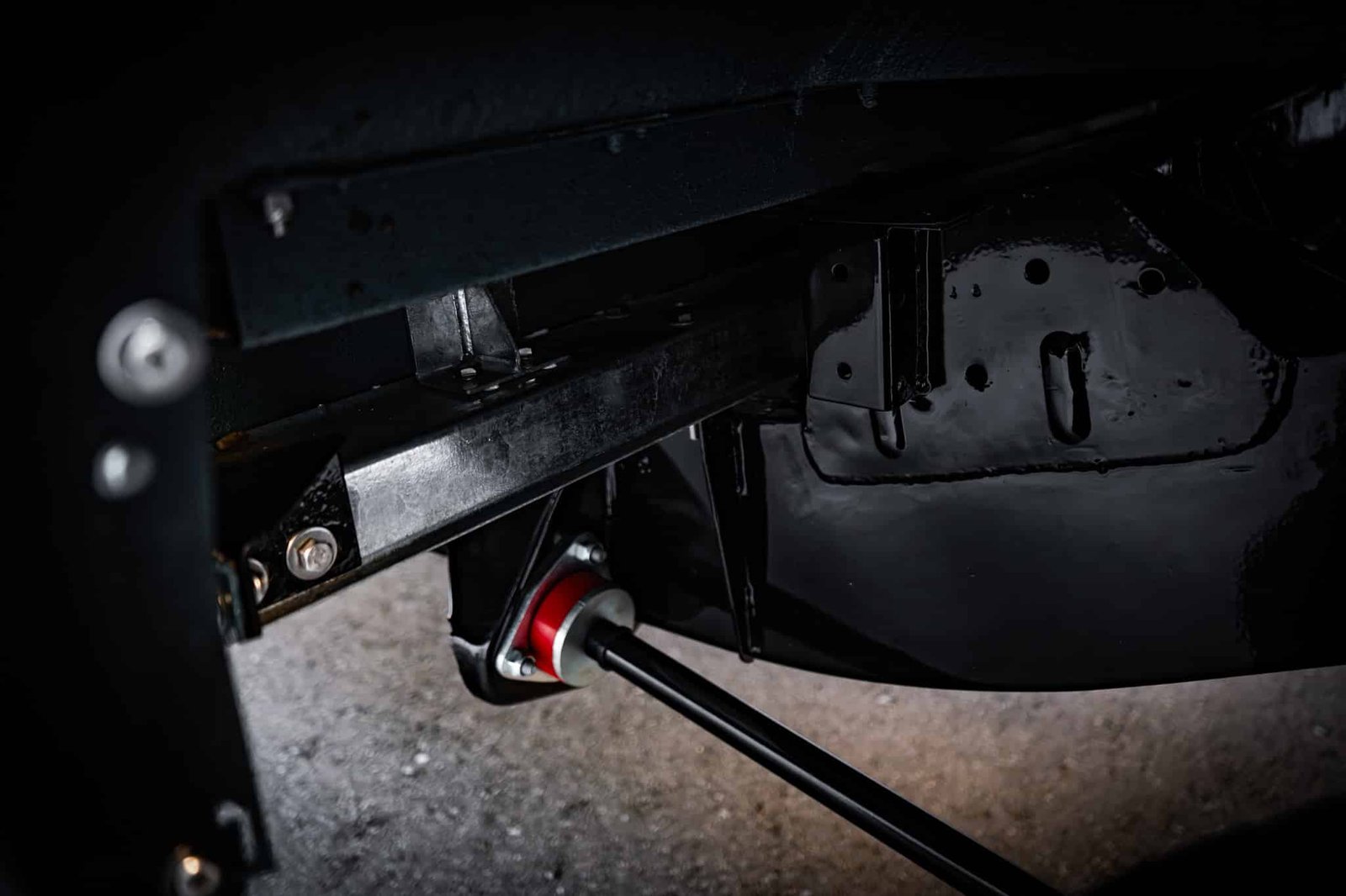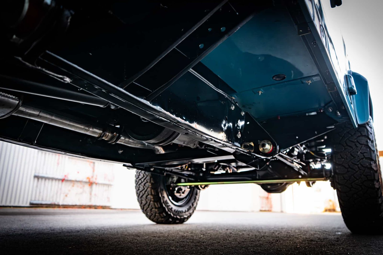 The restoration included a full strip-down of the original chassis, which was sandblasted and powder coated in gloss black, preserving its structure and enhancing long-term durability. Underside and mechanical systems were similarly refreshed: