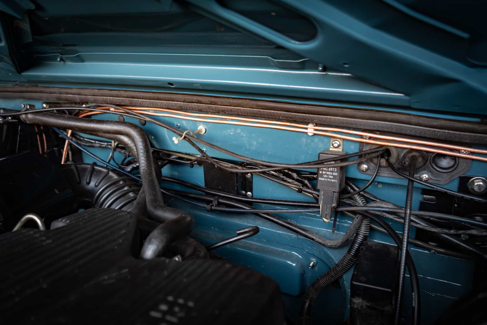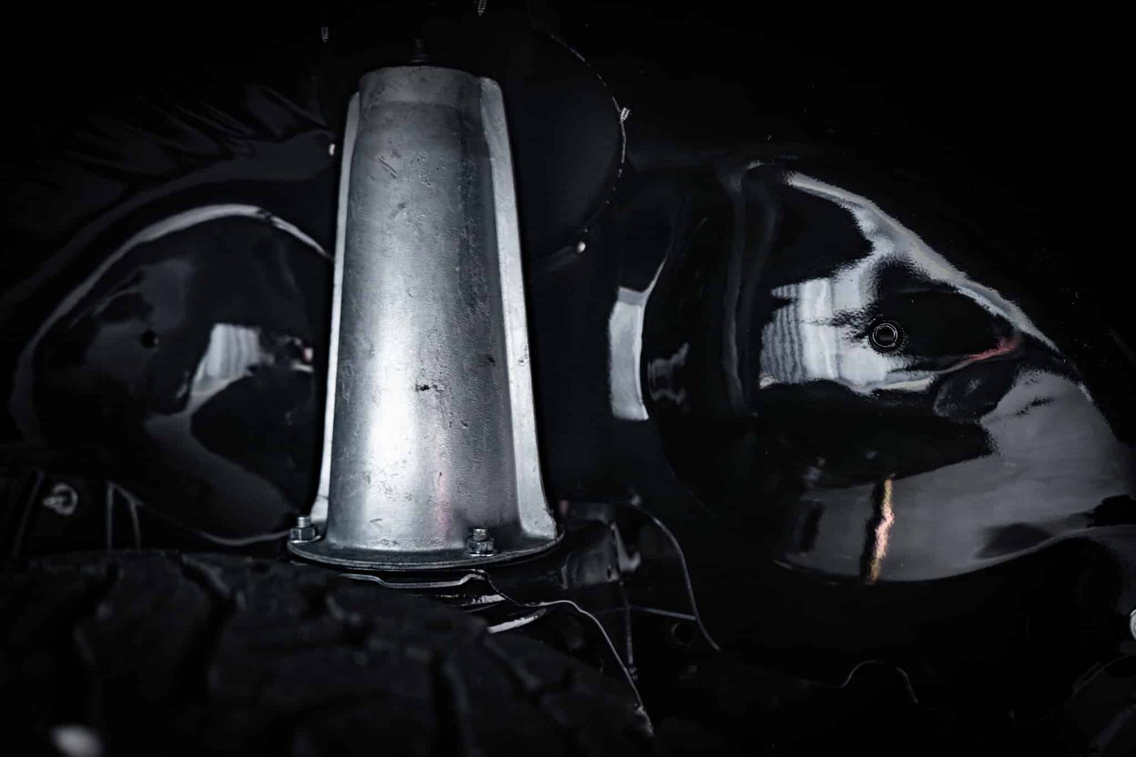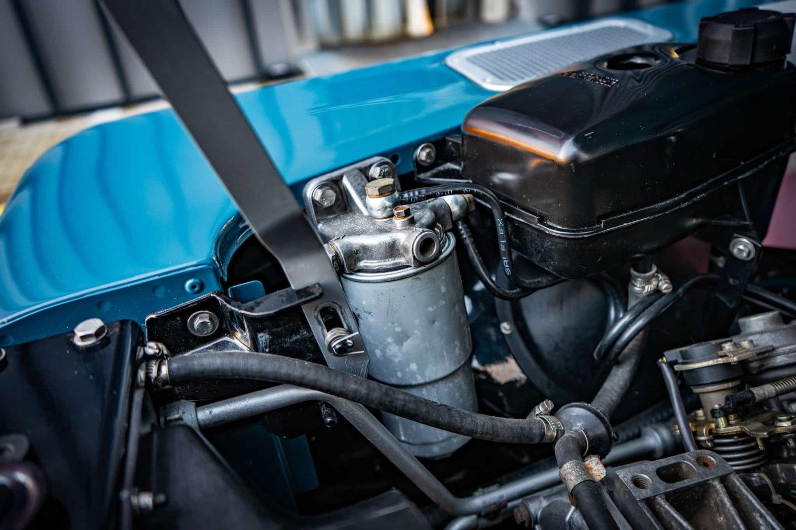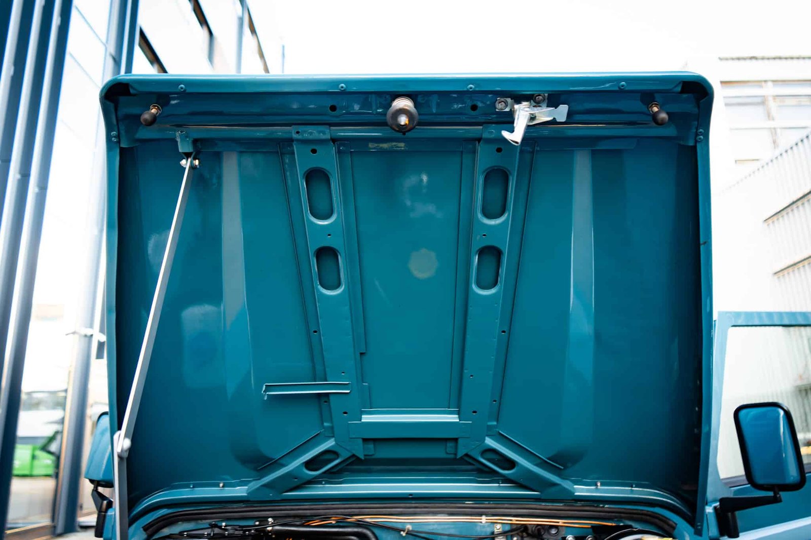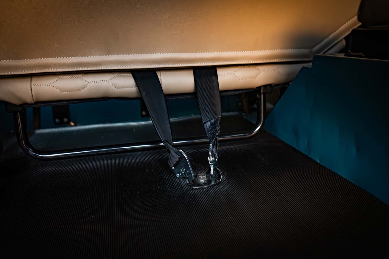 The restoration included a full strip-down of the original chassis, which was sandblasted and powder coated in gloss black, preserving its structure and enhancing long-term durability. Underside and mechanical systems were similarly refreshed: