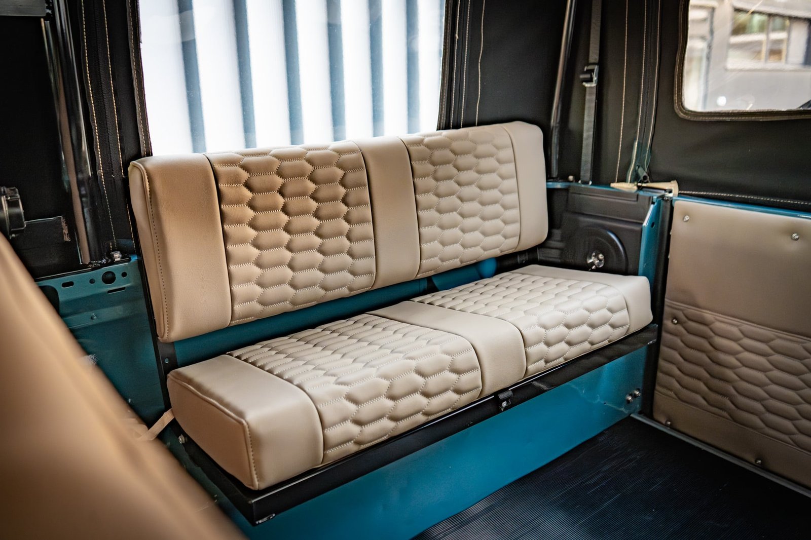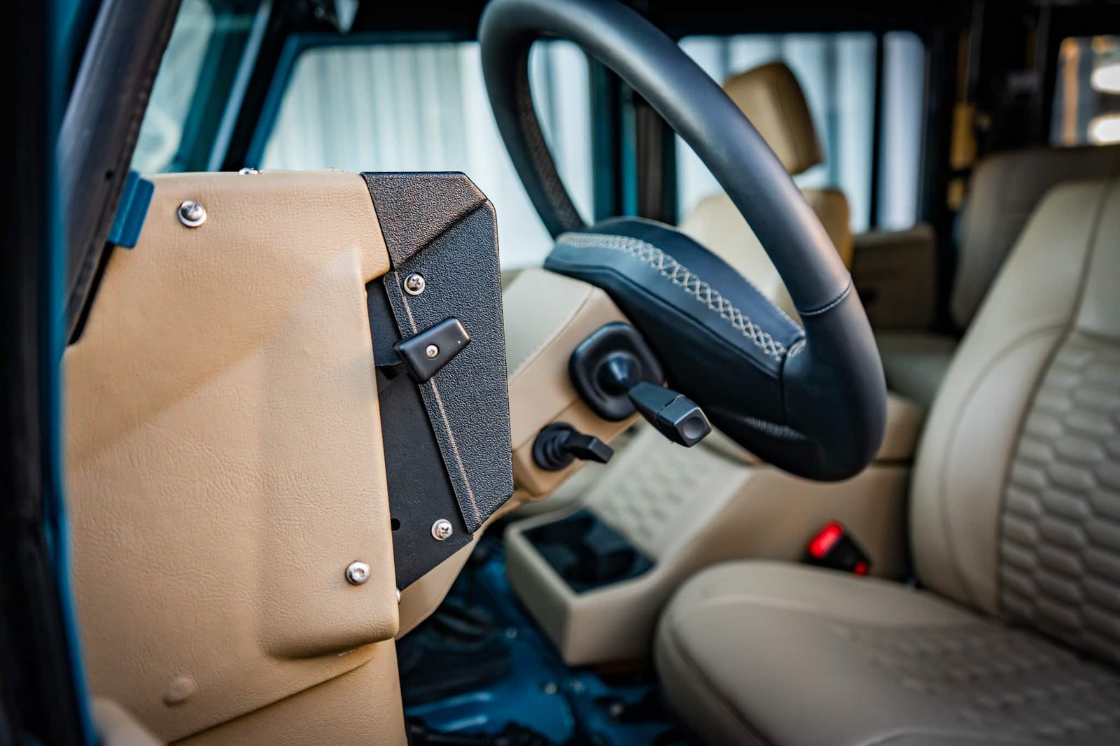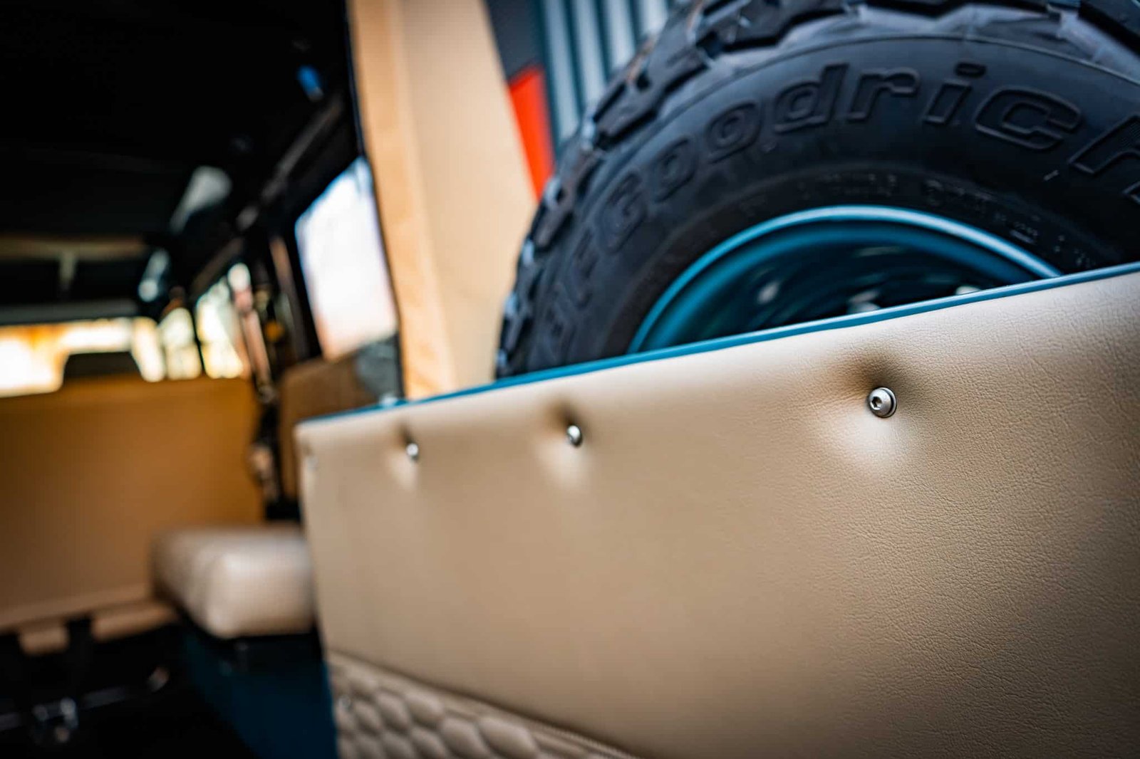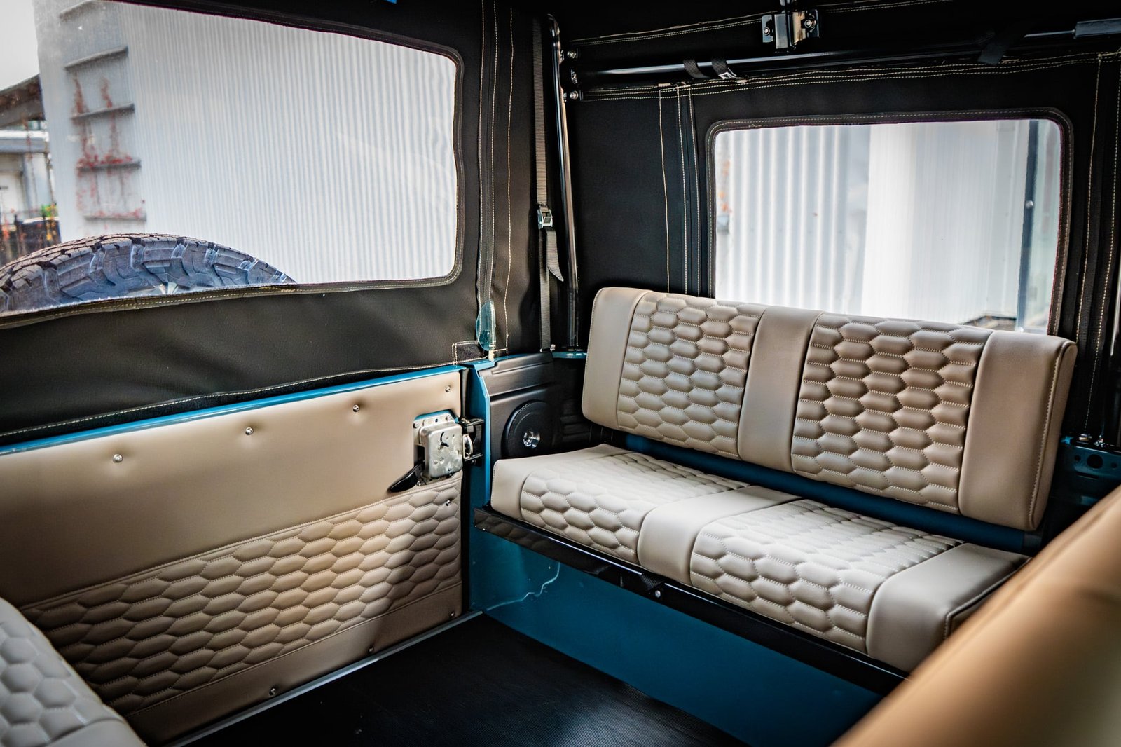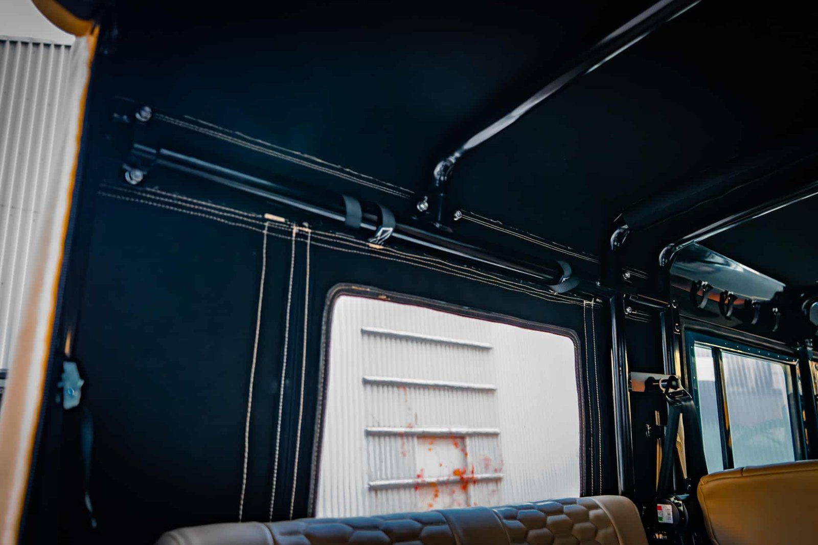 Inside, the vehicle has been completely retrimmed with a nod to expedition and open-air driving. The cabin is both refined and resilient: